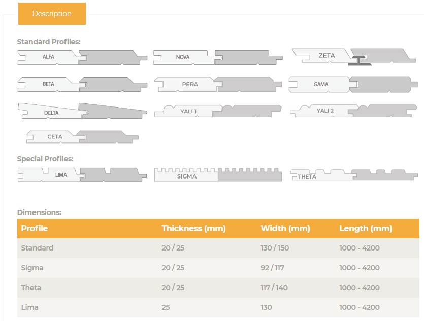 Sürdürülebilir ormanların temel ağaç türü olan sert ağaç sınıfında yer almaktadır. Sade hare yapısı, koyu karamel rengi ve hafifliği dış mekân cephe kaplamalarına farklı bir bakış açısı katmaktadır. Sade yüzeyi ve kendine has yapısından dolayı biz ona ‘özgün’ diyoruz.